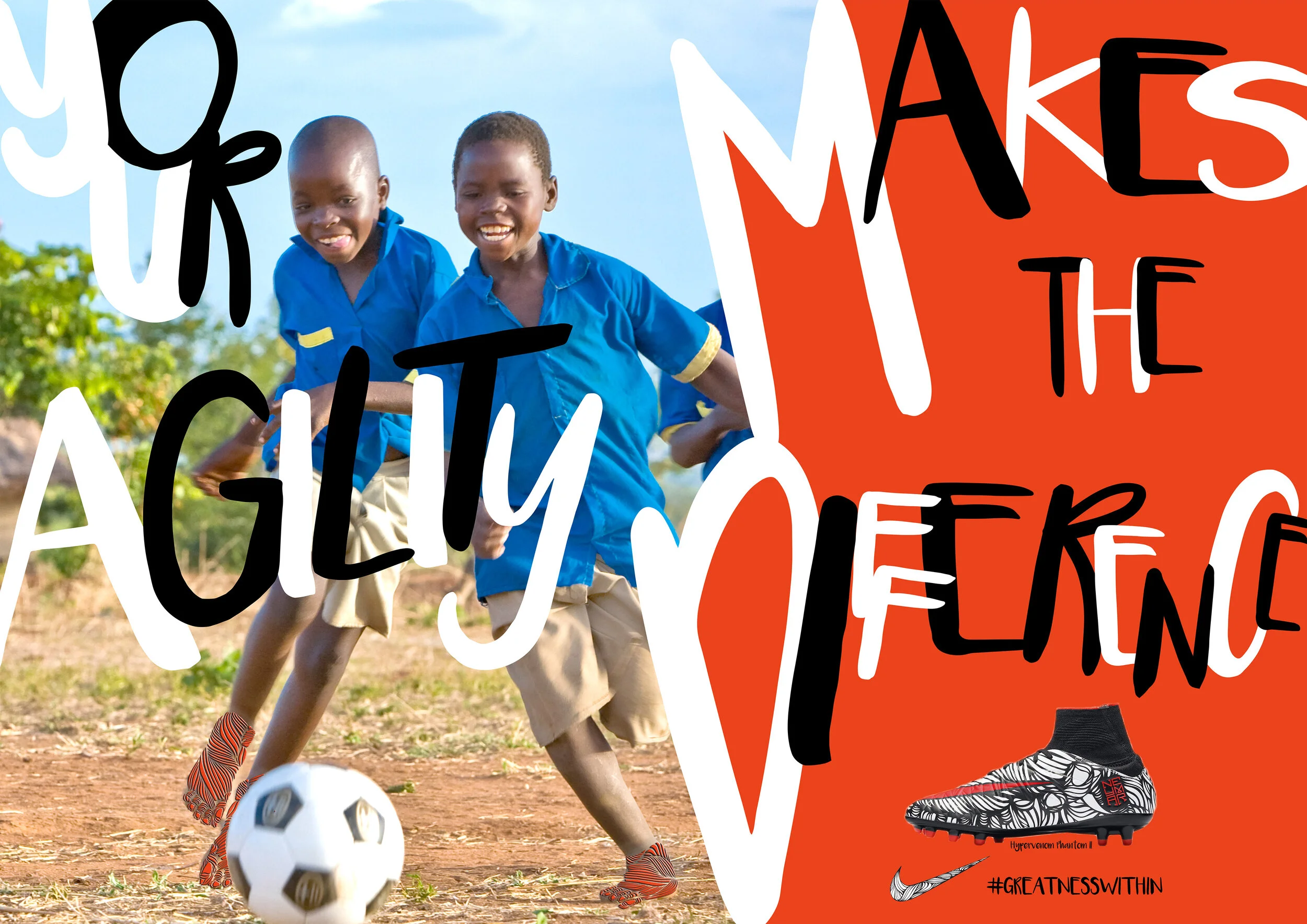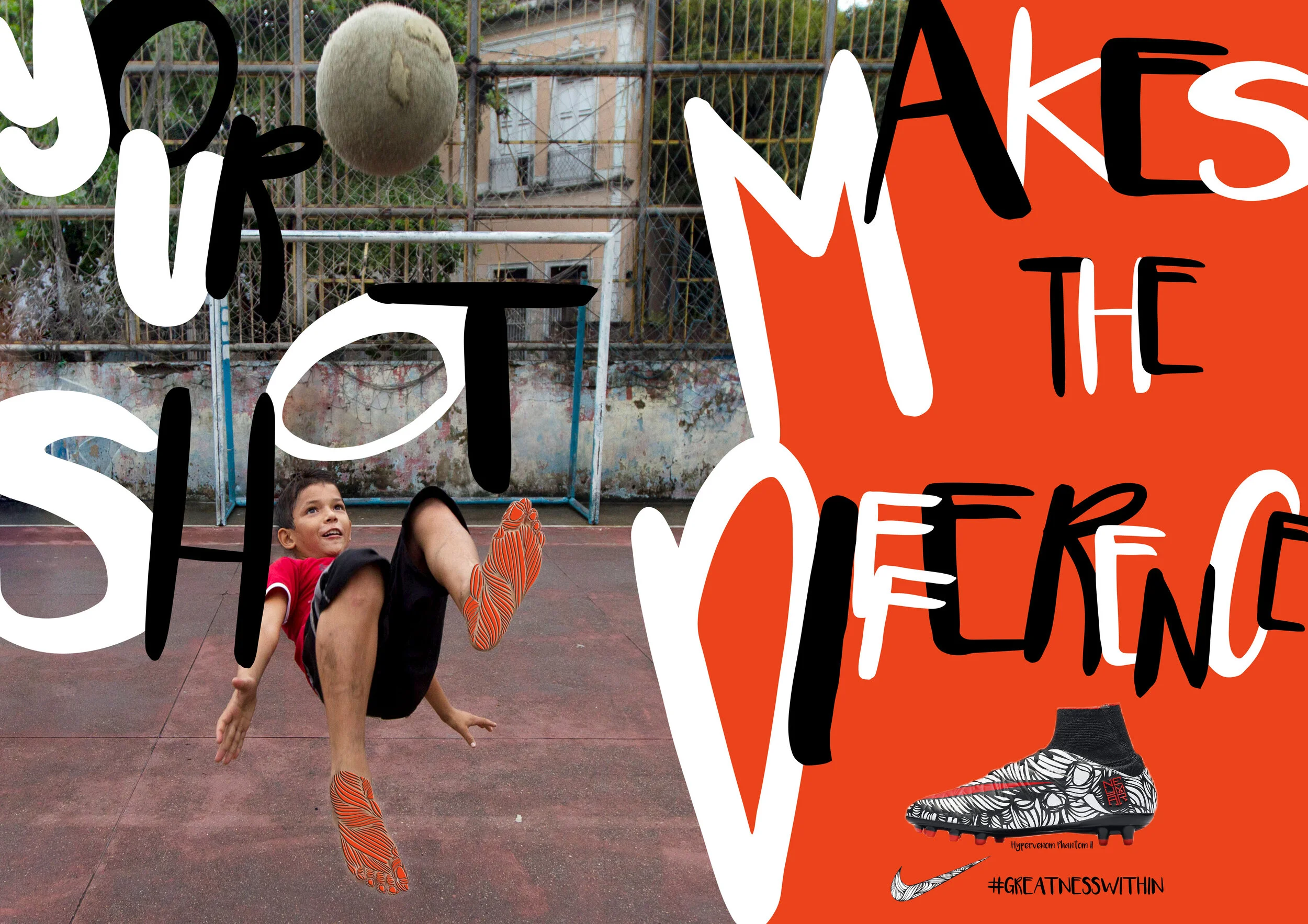 Challenge: Create a strong poster campaign for Nikes soccer shoe Nike Hypervenom Phinish II 'Ousadia Alegria' Neymar Boots.
